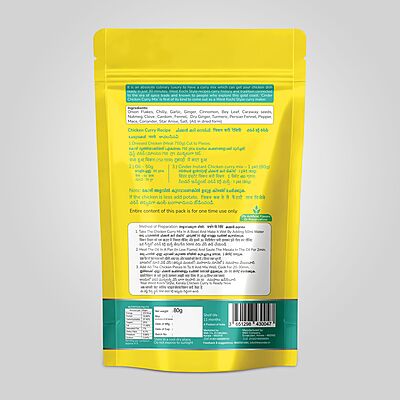 Cinder's Chicken Curry Mix is a convenient and delicious all-in-one solution for preparing a flavourful chicken curry in just three simple steps. Made with all-natural ingredients, this mix allows you to enjoy an authentic Kerala style curry without the hassle of measuring and blending numerous spices. Simply add chicken and follow the instructions to create a mouthwatering curry dish. Weighing 80g, this compact pack is perfect for a quick and easy meal for a small family. Savor the rich flavors of this curry mix and impress your family and friends with its culinary excellence.